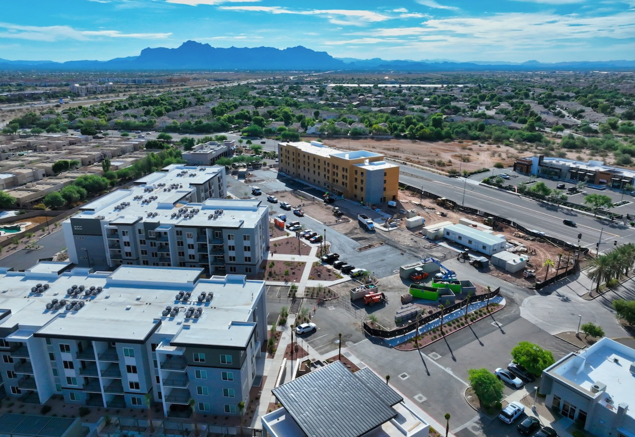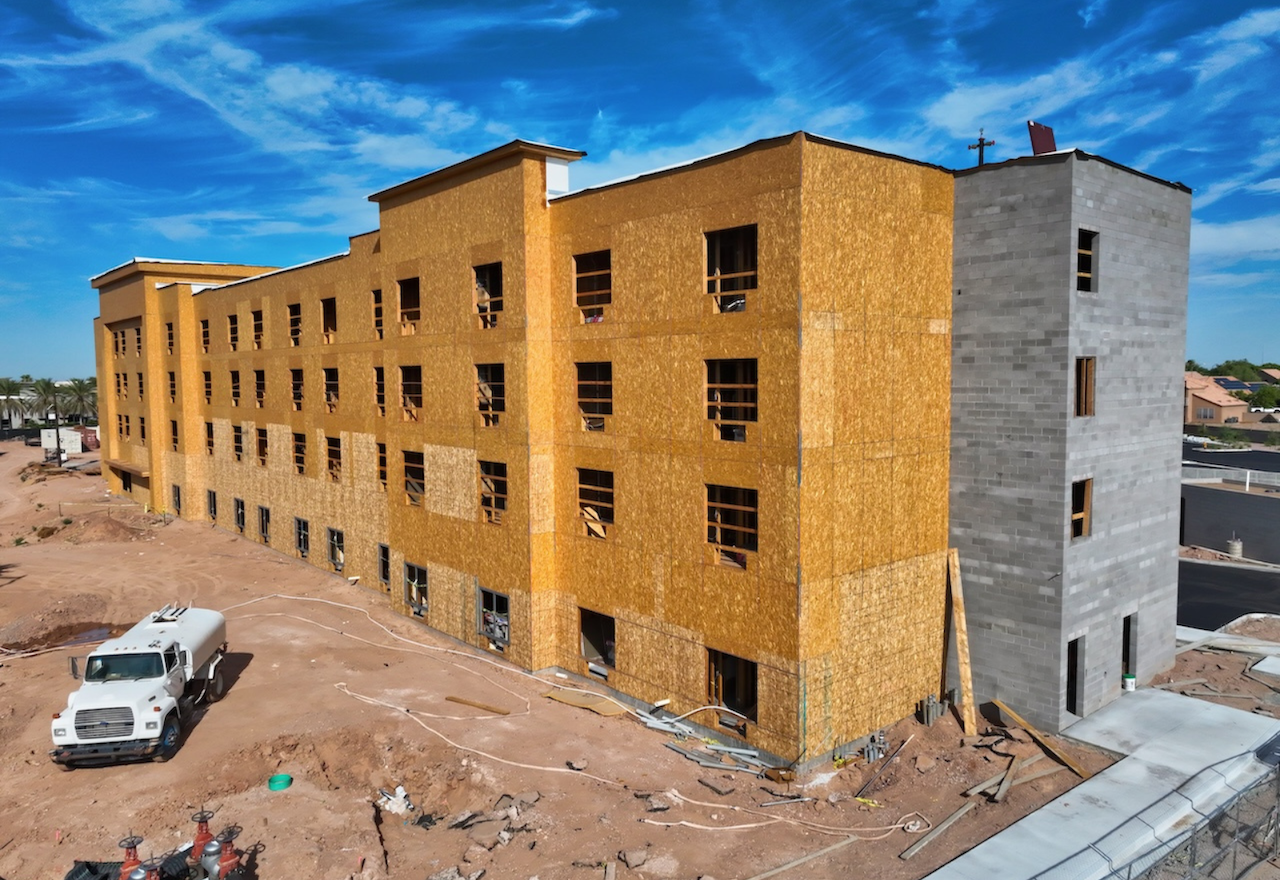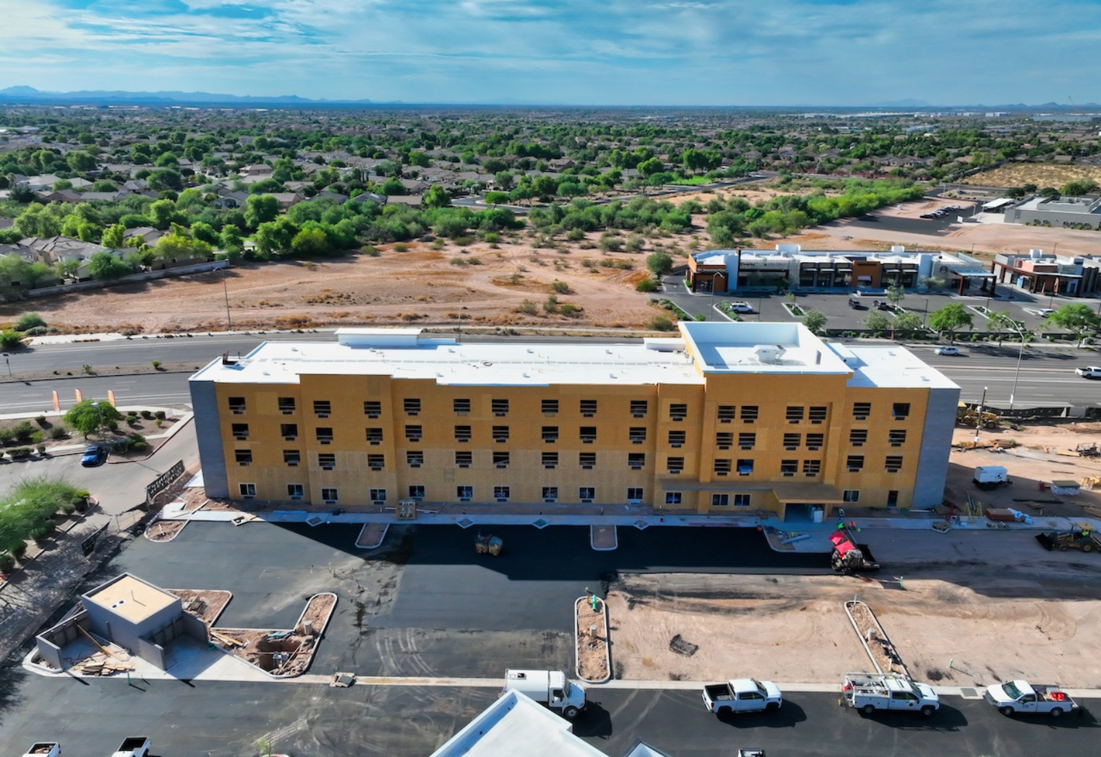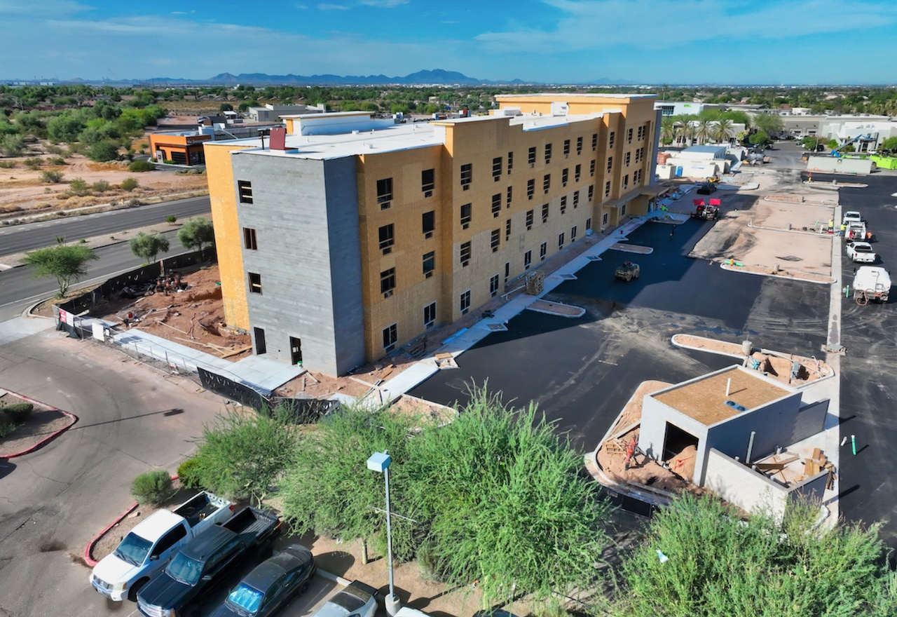 Vanguard Builders AZ is proud to present the Candlewood Suites in Mesa, Arizona, a Type V-A building with R-1 occupancy and 108 guest rooms. This four-story 56,000 square foot hotel showcases our ability to execute your wood framed project with precision and excellence. Our expertise in hospitality projects allows us to utilize our labor force more efficiently and effectively, ensuring your project is finished on time and on budget.